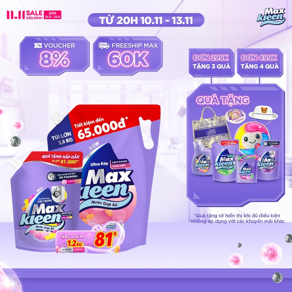 [Free 1kg2 Bag] Maxkleen Laundry Detergent and Softener Bag for Washing Machines, Scent: Sunshine/ Magical/ Nature 3.8kg App 5 (22074)