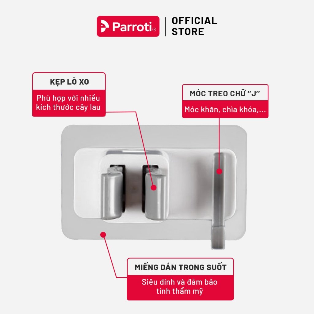 Móc treo cây lau nhà dán tường 2 trong 1 Parroti Keeper KP03