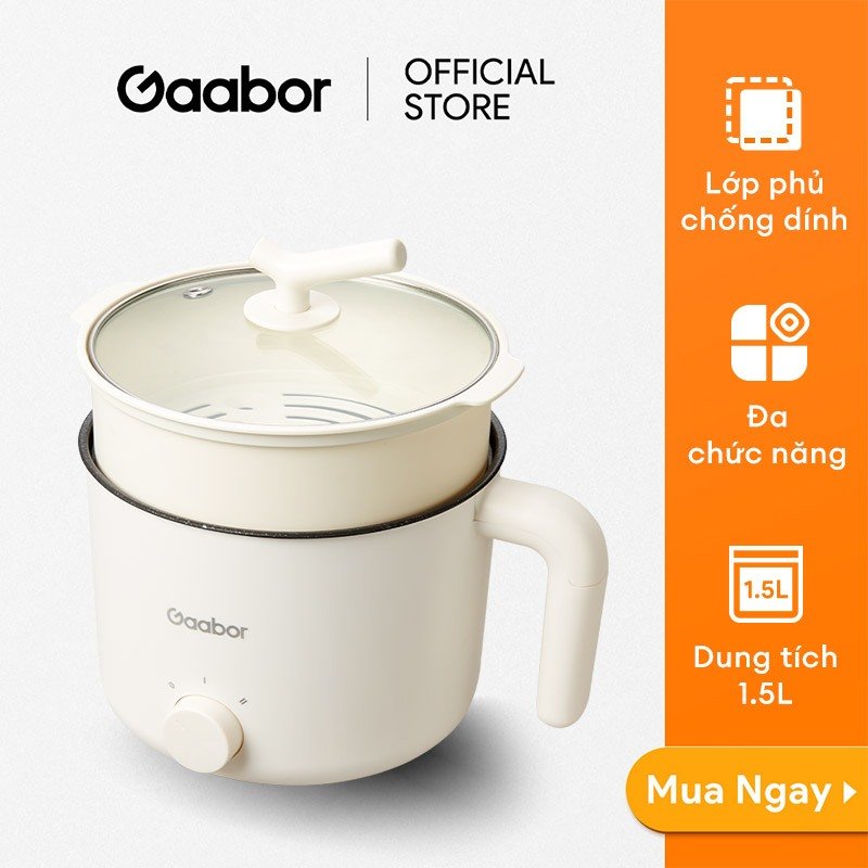 Nồi điện đa năng Gaabor GR-N15A lẩu điện 1.5L chống dính công suất 600W ăn mì nấu lẩu kèm xửng hấp
