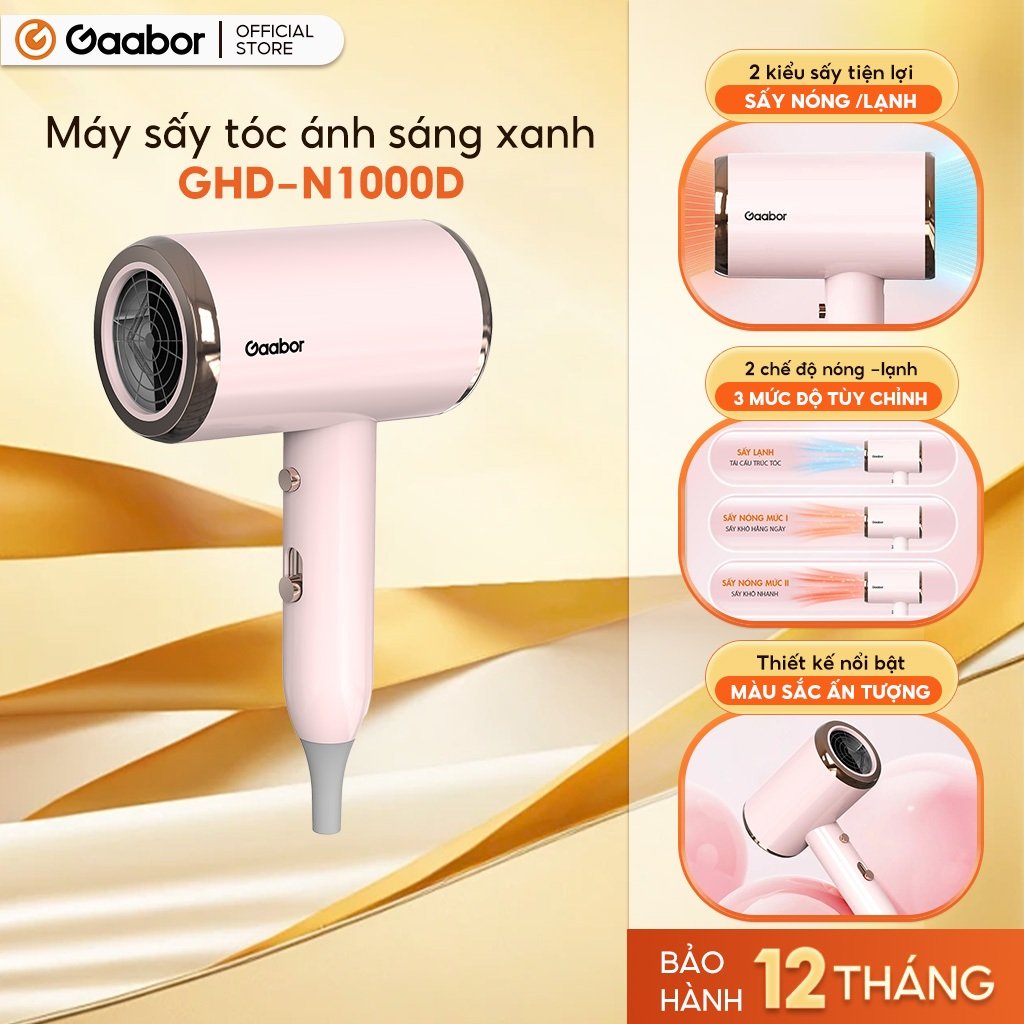 Máy sấy tóc Gaabor GHD-N1000D sấy nhanh 2 chiều nóng lạnh công suất 1000W độ ồn thấp ánh sáng xanh